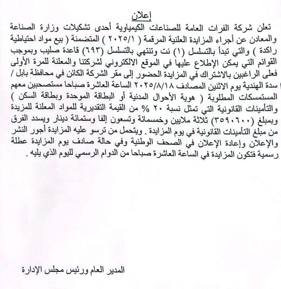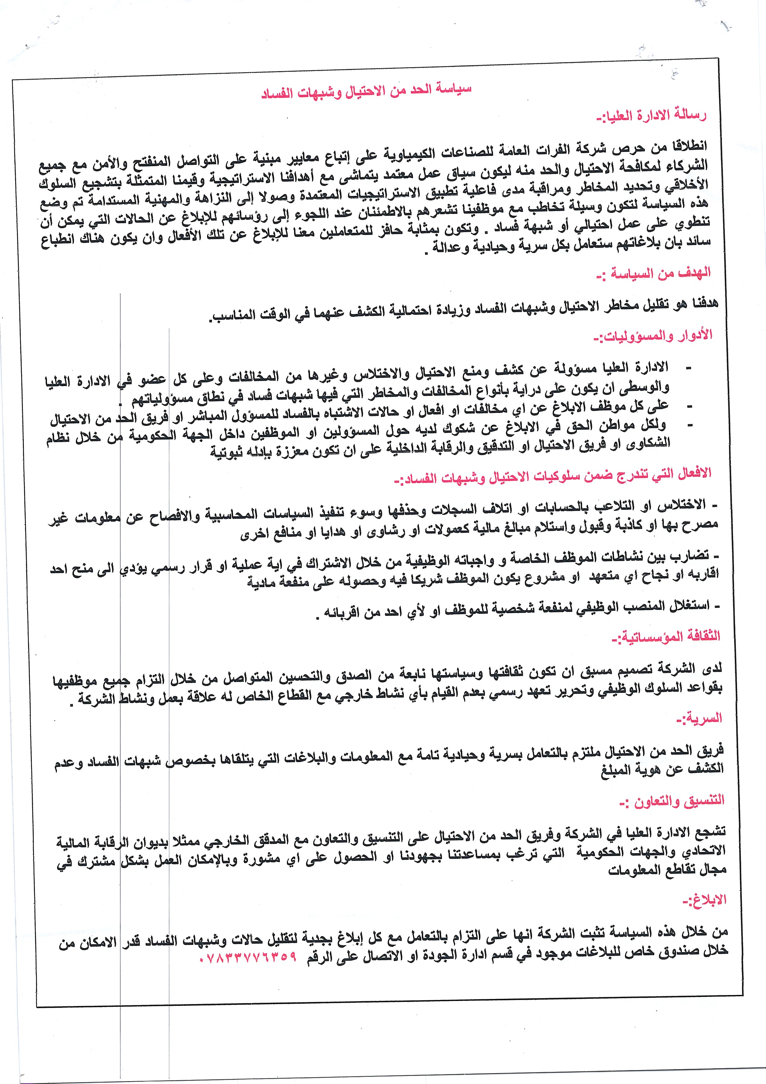 جميع الحقوق محفوظة © شركة الفرات العامة للصناعات الكيمياوية | 2026