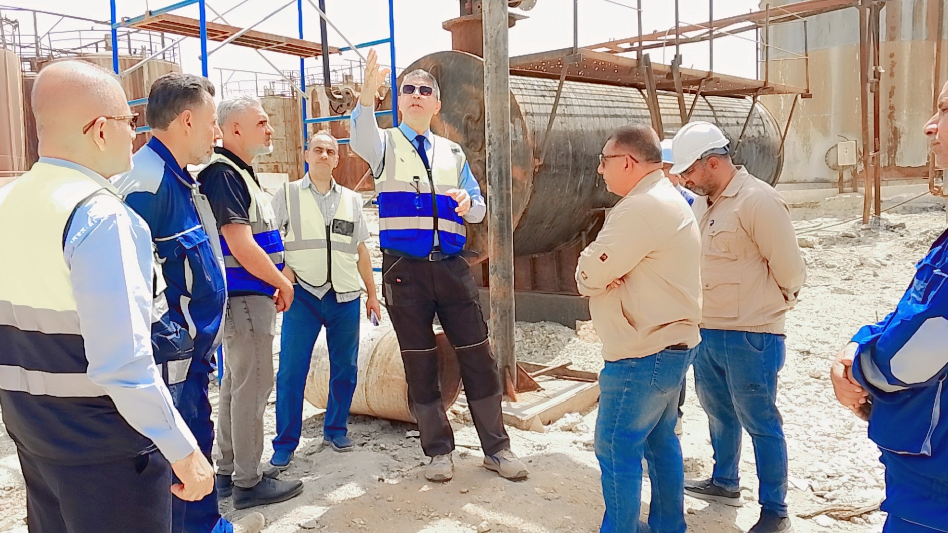 مدير عام شركة الفرات العامة للصناعات الكيمياوية يشرف ميدانياً على أعمال تأهيل وتطوير مصنع حامض الكبريتيك المركز.